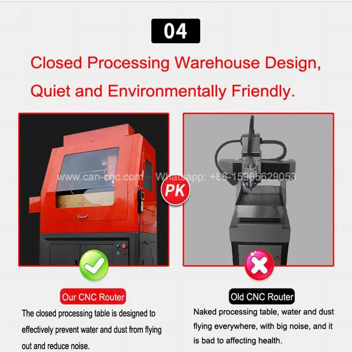 Der geschlossene Bearbeitungstisch soll das Herausfliegen von Wasser und Staub wirksam verhindern und den Lärm reduzieren.