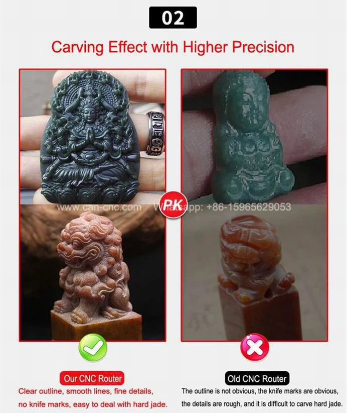 Schnitzeffekt mit höherer Präzision: Unser CNC-Fräser zeichnet sich durch eine klare Gravur, glatte Linien, feine Details, keine Messerspuren und eine einfache Handhabung von harter Jade aus.